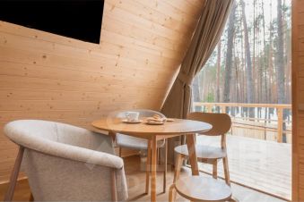 Уютный лодж с панорамными окнами, где свободно могут разместиться до 4 гостей.