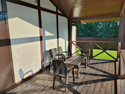 На территории в 7 соток находится одноэтажный дом (80 м.кв.) с верандой, беседка, мангал, большая парковка, откатные ворота.