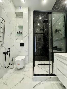 Две стильные ванные комнаты с душевыми кабинами.