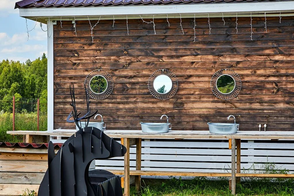 В данных сафари-тентах нет собственного душа и туалета, а также кухни. Но все это есть на территории глэмпинга. Уютный чайный домик со всем необходимым для приготовления пищи, отдельный домик с комфортными душевыми, туалетами, баней и постирочной — все к вашим услугам.