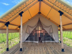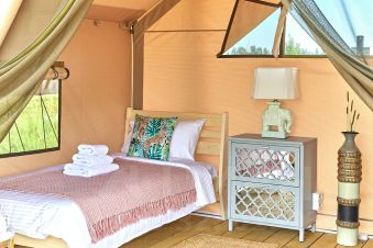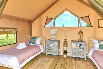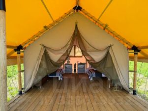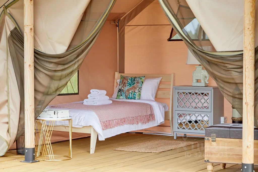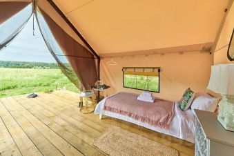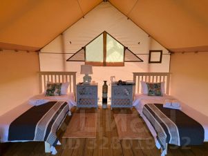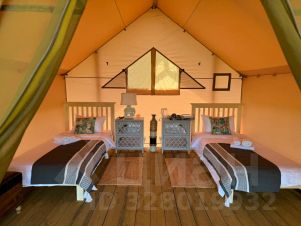 Просторный сафари-тент подойдет для тех, кто мечтает насладиться тишиной и красотой дикой природы, оставаясь при этом в достаточно комфортных условиях. Внутри вас ждут две удобные односпальные кровати. Окна и открытый полог сафари-тента позволят нон-стоп любоваться живописными видами окружающей природы, не покидая уютного пространства. А москитная сетка надежно защитит вас от насекомых.