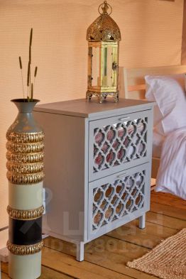 Сафари-тент оборудован самым необходимым: у кроватей есть тумбы с необычными настольными лампами. Есть мягкий топчан и журнальный столик. Лампы и другие элементы декора создают особую атмосферу романтики и спокойствия.