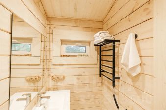 Просторное шале площадью 55 кв.м выполнено из натурального дерева. Из панорамных окон открывается вид на лес и Волгу. Это отличное место для отдыха с семьей или в компании друзей. Максимум 5 гостей.
