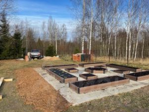 Участок не обрабатывали с 2022 года, но на нём остались плодовые деревья и кусты, грядки с клубникой и цветочные клумбы. Дополнительный уют на участке создают взрослые берёзы и ели