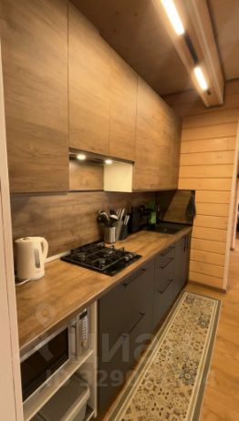Кухня - варочная газовая панель, вытяжка, холодильник, микроволновая печь, чайник, раскладной стол, за которым комфортно разместятся 10 человек и вся необходимая посуда.