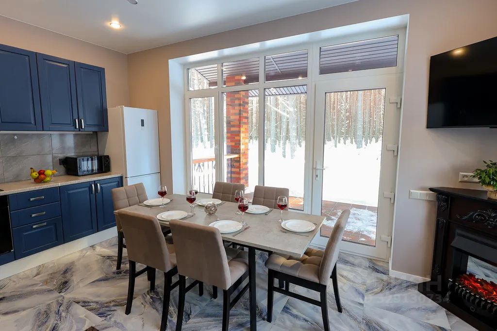 В коттедже: уютная кухня - гостиная с панорамным окном и видом на сосновый лес, большим обеденным столом, диваном, камином и зоной ТВ и Wi-Fi , в которой есть все необходимое электроплита, духовой шкаф, посудомоечная машина, чайник, кофеварка, микроволновая печь, посуда и приборы.
