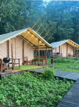 К удобствам гостей 10 бунгало со спальными местами, с захватывающим видом на заповедный лес и озеро Селигер. Тёплые душевые и туалетные комнаты расположены в отдельно стоящем здании.