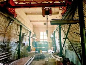 - Производственно-складское здание общей площадью (включая АБК) 1800 м2. Несколько цехов высотой 7 м, полы ровные (бетон, чугунная плитка). Некоторые цеха оборудованы кран-балками грузоподъемностью 3,2 т. Высота до крюка 5 м. Несколько въездных ворот на нулевом уровне с возможностью въезда внутрь цеха (5x5м);