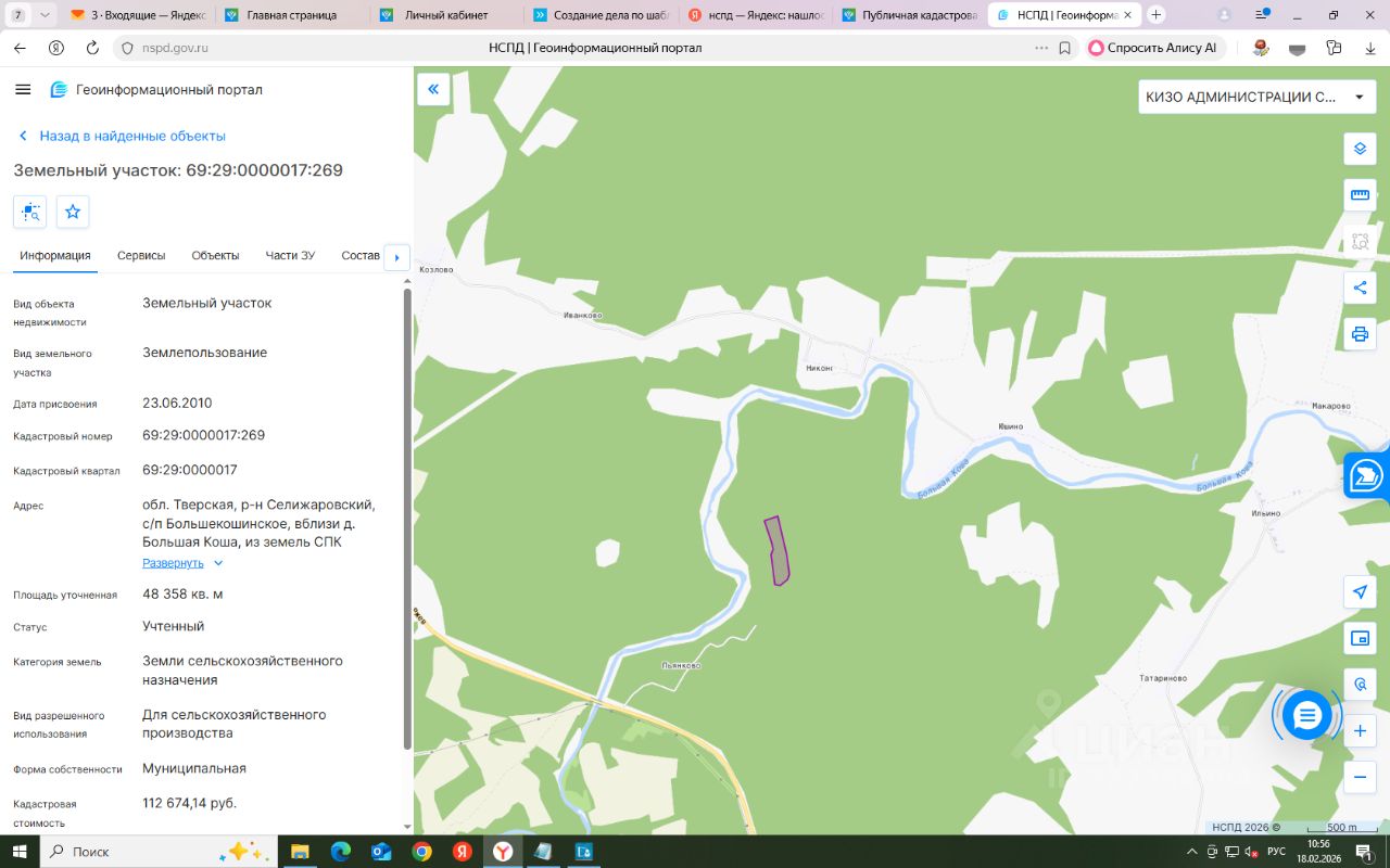 Земельный участок: кадастровый номер 69:29:0000017:269, площадью 48358 кв. м, категория земель: земли сельскохозяйственного назначения, вид разрешенного использования: для сельскохозяйственного производства, расположенный по адресу: Тверская область, Селижаровский р-н, вблизи д. Большая Коша, из земель СПК "Соколово", (далее Участок).