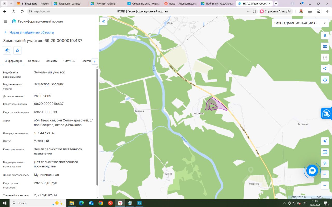 Земельный участок: кадастровый номер 69:29:0000019:437, площадью 107447 кв. м, категория земель: земли сельскохозяйственного назначения, вид разрешенного использования: для сельскохозяйственного производства, расположенный по адресу: Тверская область, Селижаровский р-н, около д. Рожково, (далее Участок).