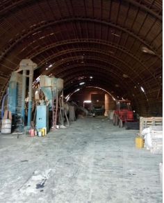 На территории объекта имеются производственные цеха в виде арочных ангаров различной площадью. 500 кв. метров, 300 кв. метров и 130 кв. метров. Ангар 120 кв.метров оборудован кран - балкой. Ангары 300 и 500 кв метров возведены на бетонированных площадках.