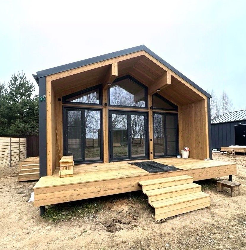 Дома новые, каркасные - 2025 года с террасой. Уютные, теплые дoма со спальней и куxней-гостинной, санузел с душевой кабиной.