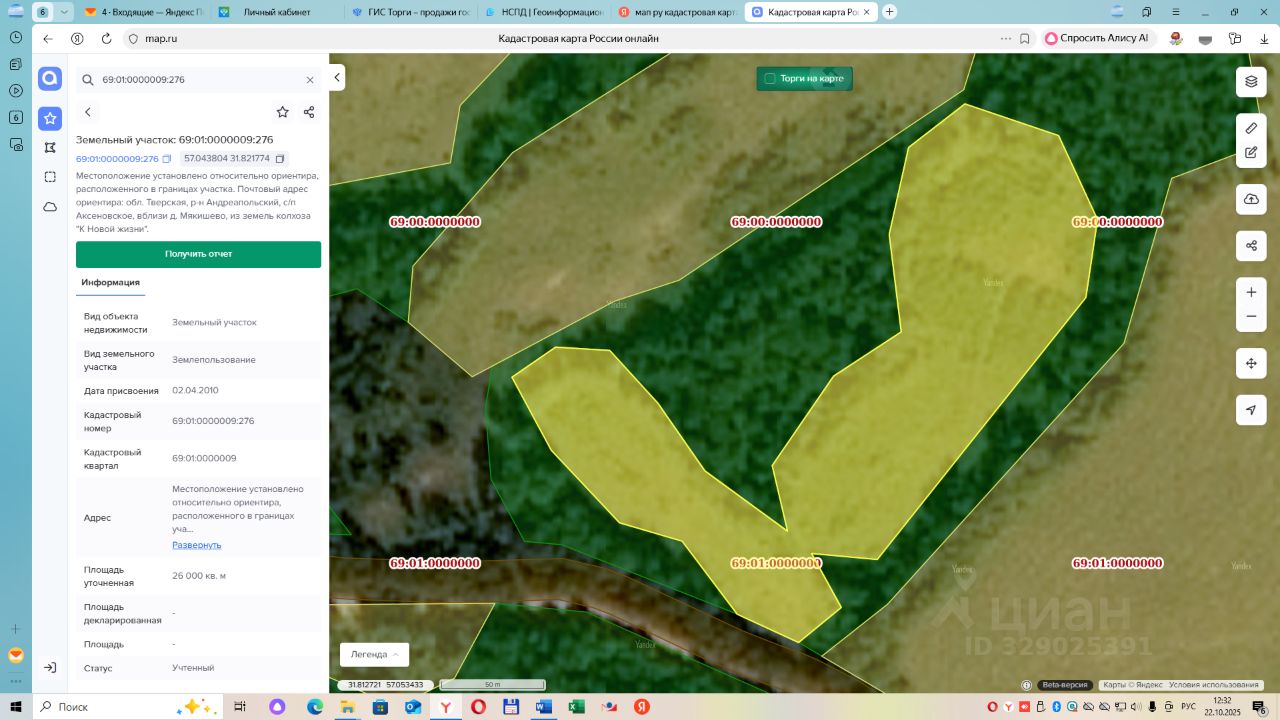 земельный участок с кадастровым номером 69:01:0000009:276, площадью 26000 кв.м. Местоположение установлено относительно ориентира, расположенного в границах участка. Почтовый адрес ориентира:Тверская область, Андреапольский р-н, с/п Аксеновское, вблизи д.Мякишево, из земель колхоза "К Новой жизни". Категория земель - земли сельскохозяйственного назначения. Разрешенное использование земельного участка для сельскохозяйственного производства. Ограничение прав и обременение земельного участка: не зарегистрировано.