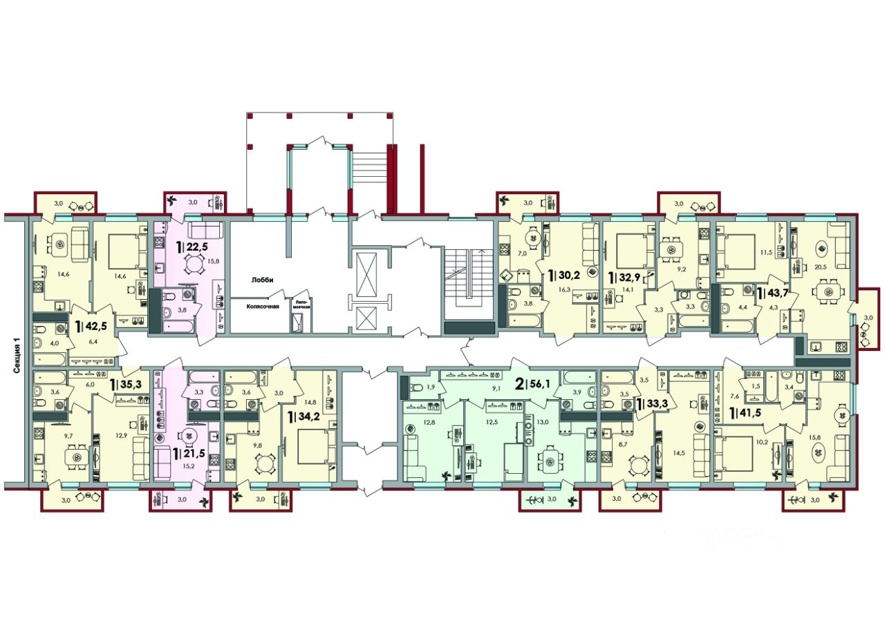 • Безбарьерная среда для мам с колясками, пожилых и маломобильных людей: вход с уровня земли, просторный проходной лифт.