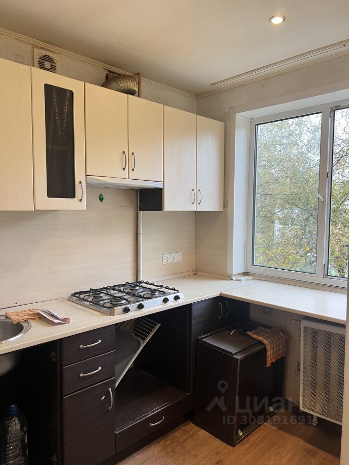 Окна выходят на две стороны: одна с прекрасным видом на рощу, где можно гулять и наслаждаться природой, а другая — на двор. Во дворе детская площадка, садик. На кухне установлен встроенный кухонный гарнитур. Санузел совмещенный, выложен плиткой. Балкон без застекления.