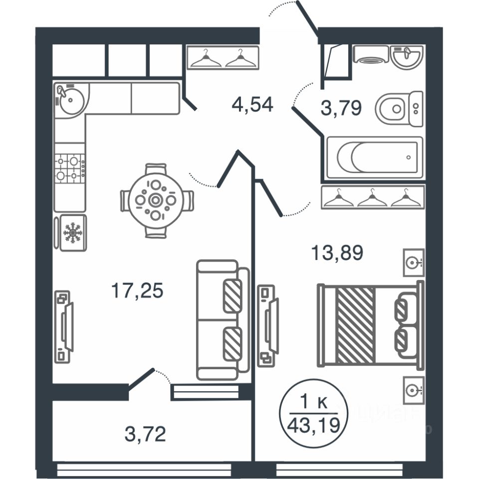 Общая площадь43,19 м²