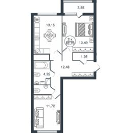 Продается 2-комн. квартира, 62,76 м²