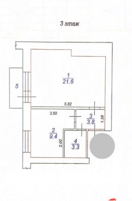Площадь-38.1 кв.м ,комната-21.6 кв.м,кухня- 9.4кв.м. Балкон из комнаты.