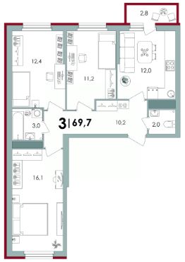 Площадь кухни12 м²