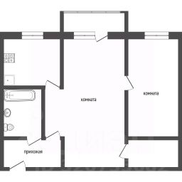 Основная комната площадью 19 м² имеет выход на балкон и доступ в гардеробную, вторая комната (12 м²) компактная и уютная. Кухня стандартной формы (6 м²) функциональна, совмещенный санузел и прихожая.