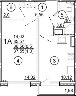 Общая площадь37,55 м²