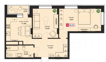 общая площадь 65,25 м2.