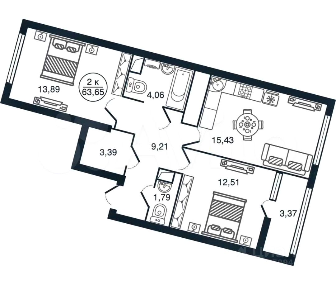 63,7 м²