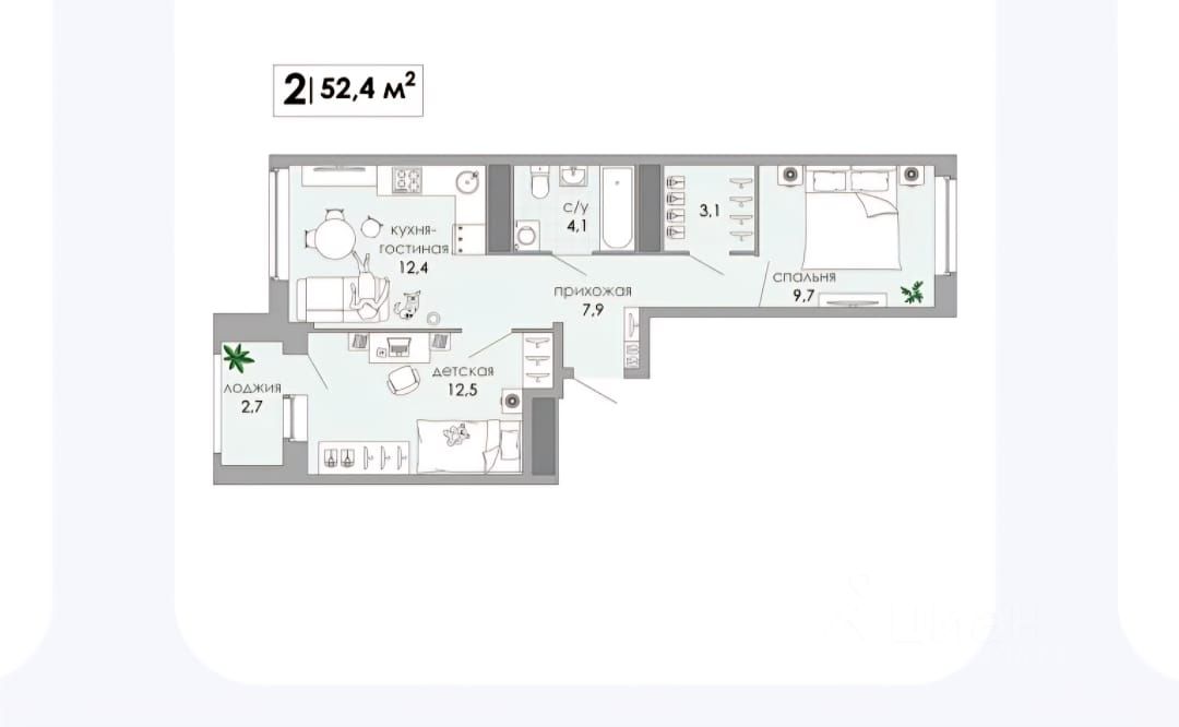 52,4 м²