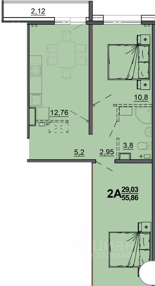 Общая площадь 56,58м2