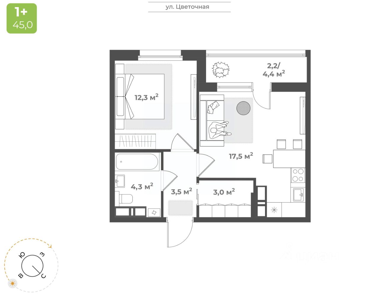 Продаётся 1-комнатная квартира в строящемся доме (Дом 2), срок сдачи: IV-кв. 2026, общей площадью 42.8 кв.м., на 11 этаже. Будущий жилой квартал - это уникальный для Твери проект, обеспеченный всем необходимым для жизни: благоустроенный двор без автомобилей, детские площадки для разных возрастов, зоны для спорта, продуманные планировки квартир. На территории комплекса появится новая школа на 1224 мест и центральный бульвар.