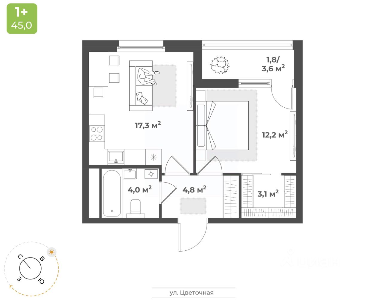 Продаётся 1-комнатная квартира в строящемся доме (Дом 2), срок сдачи: IV-кв. 2026, общей площадью 43.2 кв.м., на 14 этаже. Будущий жилой квартал - это уникальный для Твери проект, обеспеченный всем необходимым для жизни: благоустроенный двор без автомобилей, детские площадки для разных возрастов, зоны для спорта, продуманные планировки квартир. На территории комплекса появится новая школа на 1224 мест и центральный бульвар.