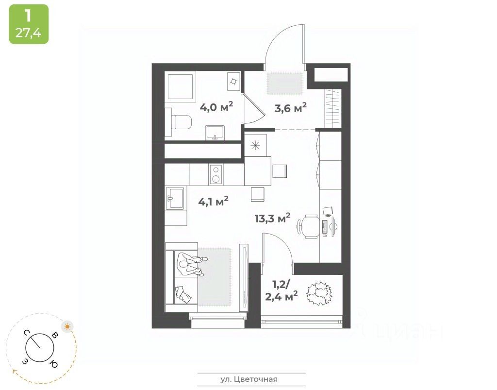 Продаю квартиру-студию в новостройке, в Заволжском районе.