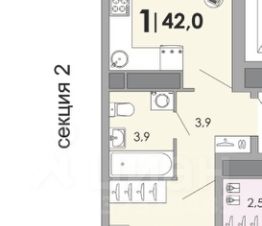 Продается 1 комнатная квартира с продуманной планировкой, общая площадь квартиры 42 м2.