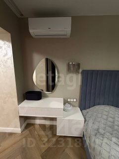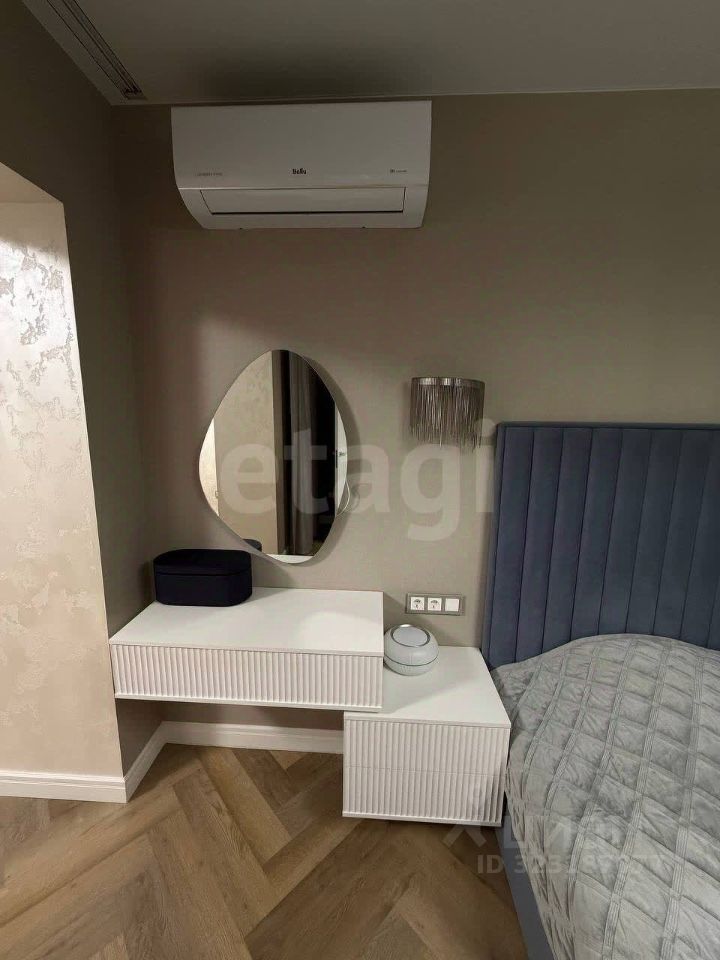 Спальня: Кровать 180см, кондиционер, подвесные тумбы и туалетный столик с зеркалом с подсветкой, телевизор Нisеnsе 55 диагональ, люстра и светильники в одном стиле с дистанционным управлением, зеркальная дверь в гардеробную.