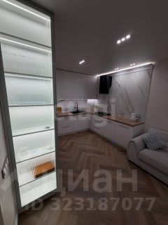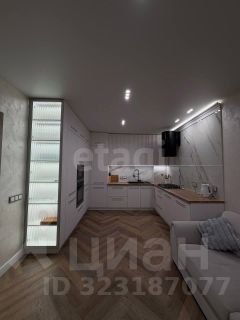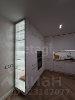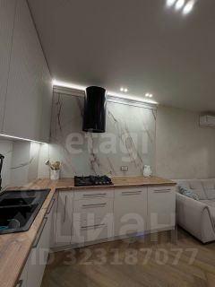 Кухня-гостиная: выполнена по индивидуальному заказу. Стена и фартук кухни отделаны широкоформатным керамогранитом от Кеrаmа Маrаzzi, три варианта освещения и подсветка