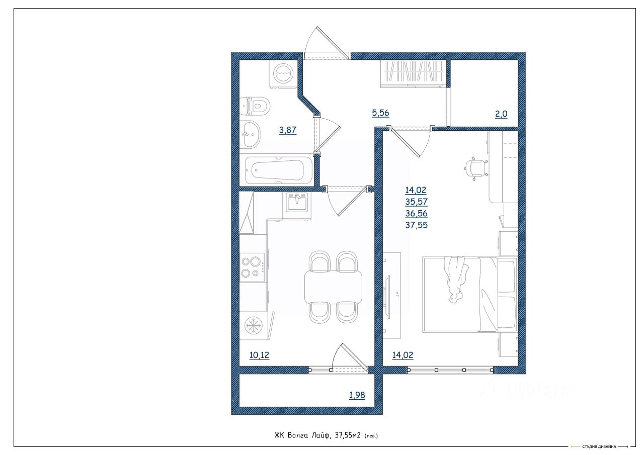Общая площадь37,55 м²