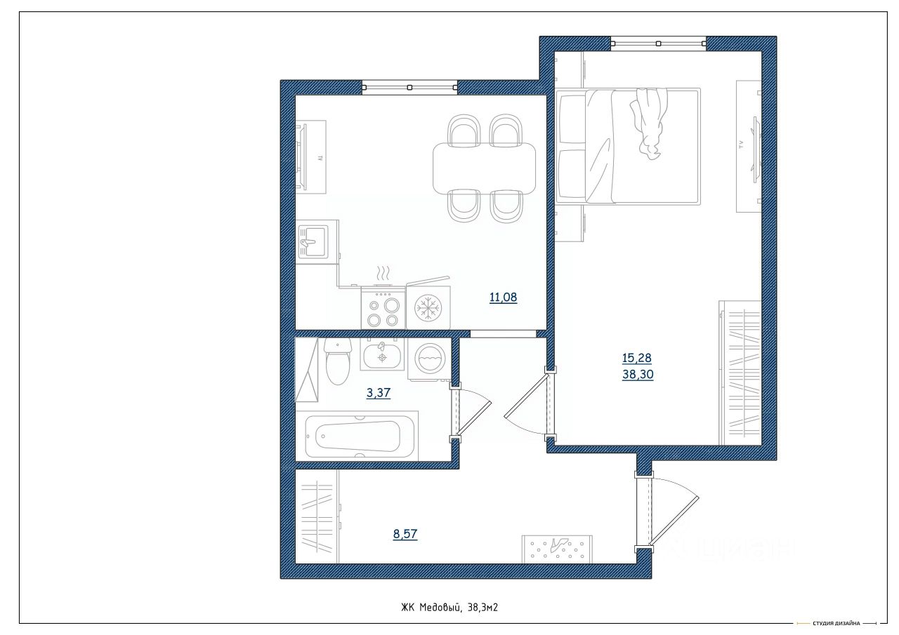 Общая площадь38,3 м²