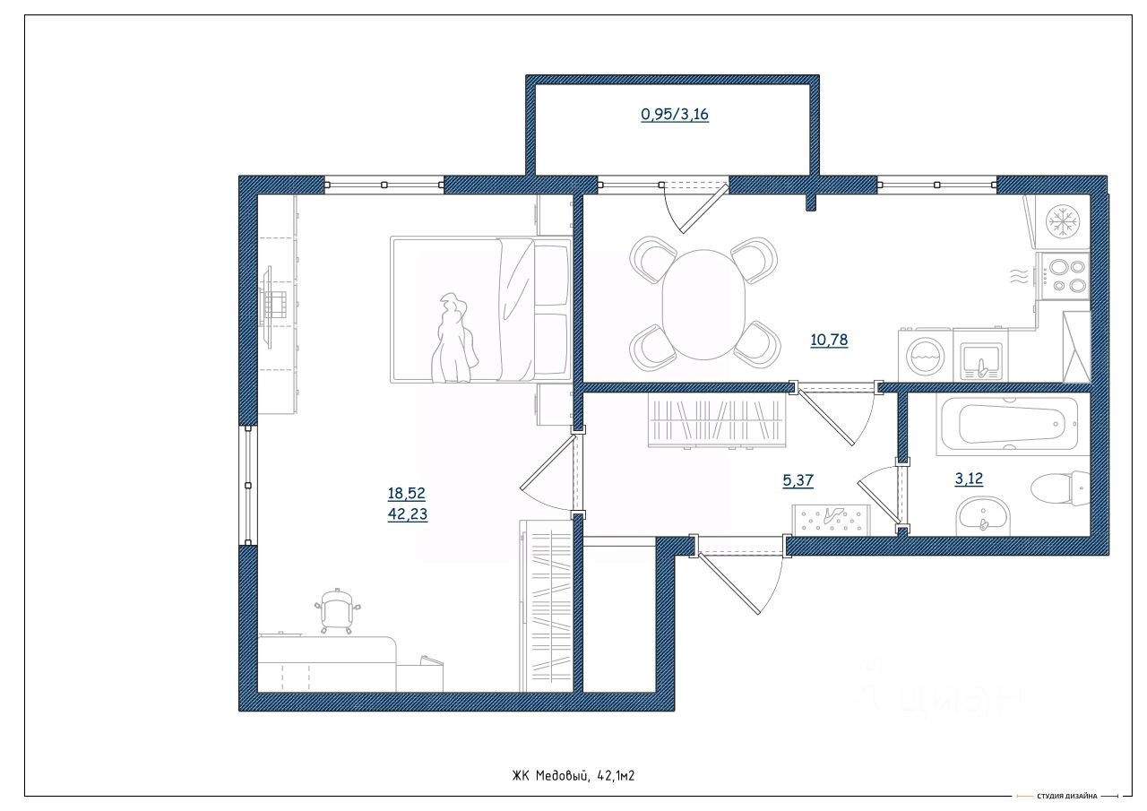Общая площадь42,1 м²