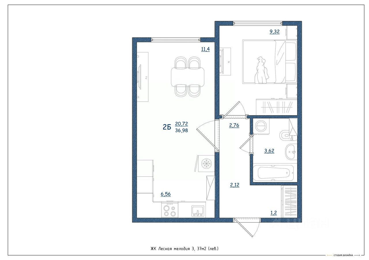 Общая площадь37 м²