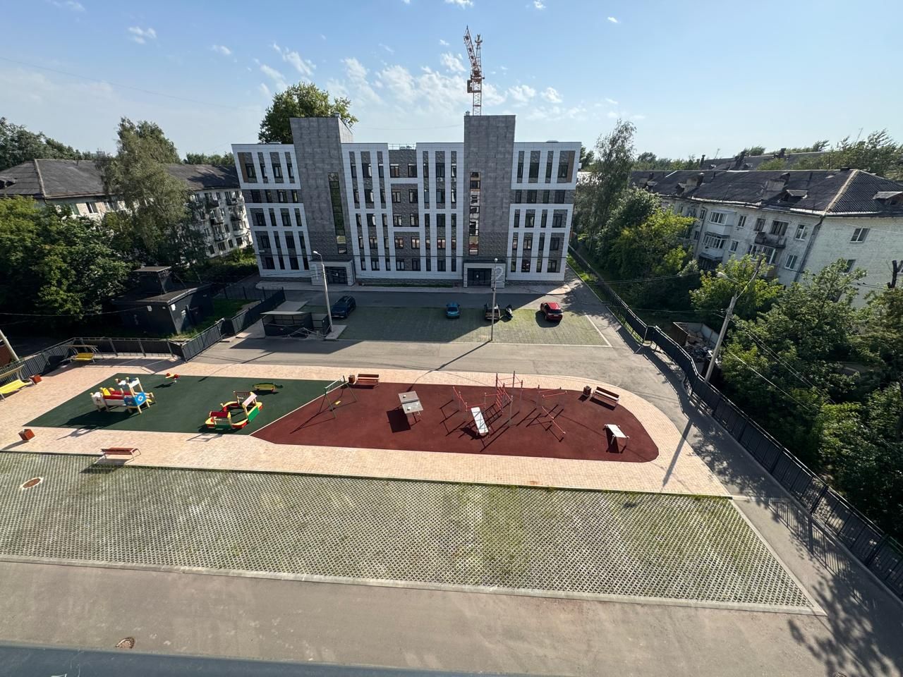 Отличное месторасположение, в шаговой доступности большое количество магазинов, детский сад и школа в 5 минутах от комплекса. Яблоневый сад для прогулок, через дорогу. Остановки общественного транспорта в 5-7 минутах пешком.