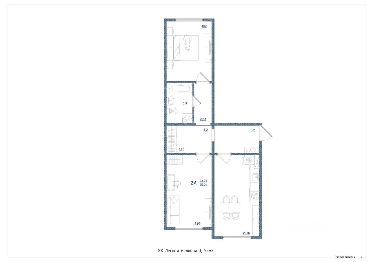Общая площадь55 м²