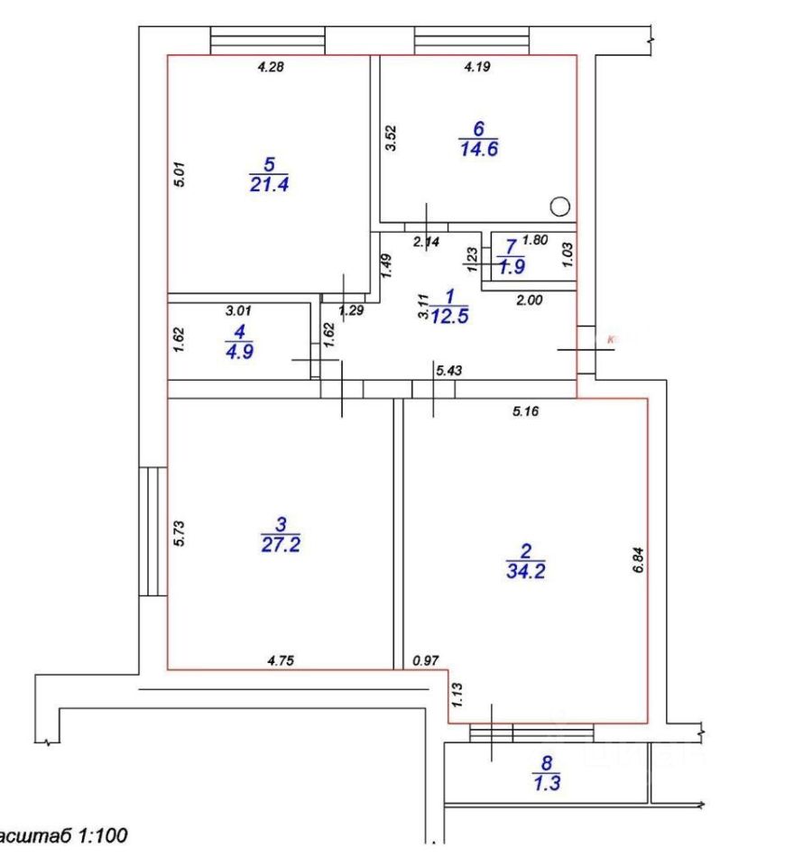 Общая площадь 116,7 кв.м.