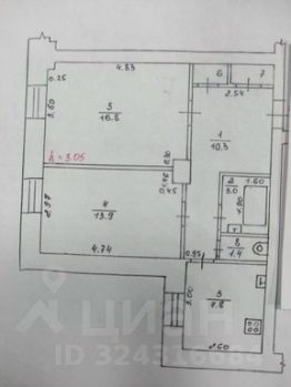 Квартира расположена на 4-этаже 4-этажного кирпичного дома, общая площадь 54.9. кв.м, жилая 30.7 кв.м с изолированными комнатами 16.8/13.9 кв.м , кухня 7.8 кв.м, С/У раздельный, высота потолка 3.05 м.
