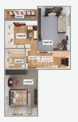 Продажа уютной 2-комнатной квартиры 60.5 м² на бульваре Гусева (Южный)