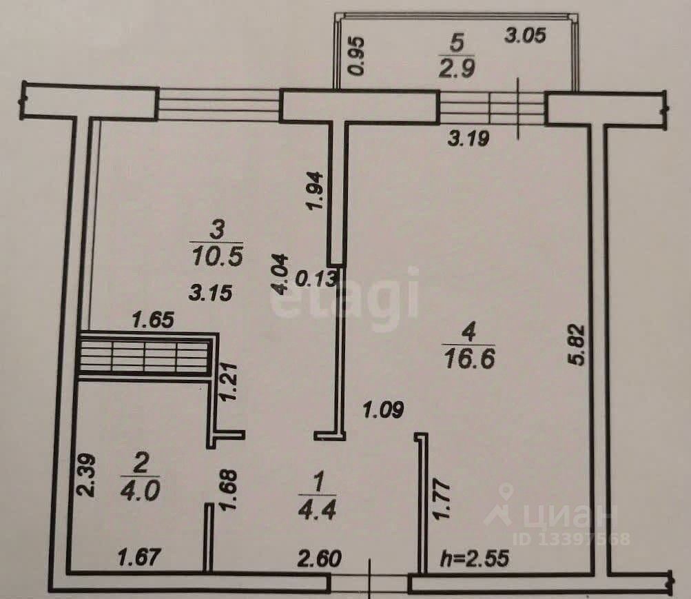 Балкон 2,9 м2.