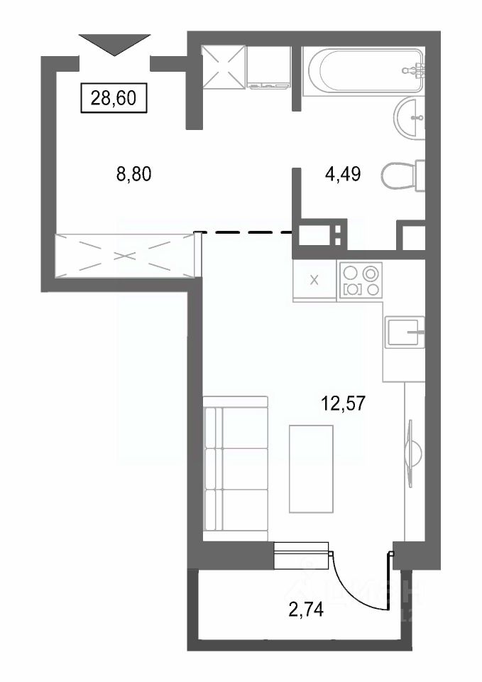Общая площадь28,6 м²