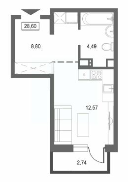 Общая площадь28,6 м²
