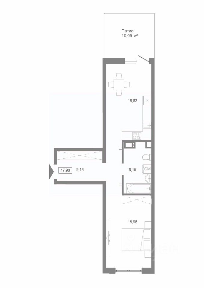 Общая площадь47,9 м²