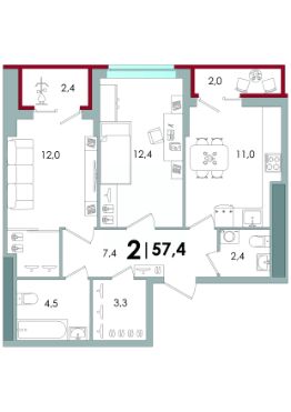 Общая площадь57,4 м²