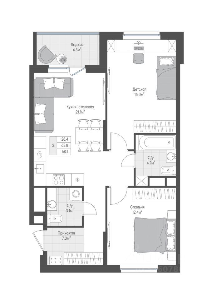 2-комн. квартира с готовой отделкой в ЖК "ЭТОТ", г. Тверь Продается квартира с просторной кухней-гостиной (21 кв м) и двумя спальнями. Лоджия с выходом из кухни-гостиной. Два полноценных санузла для удобства всех членов семьи. Окна выходят во двор и на зону парковки, жители будут избавлены от шума проезжей части и смогут наблюдать за детьми, играющими во дворе. Что входит в отделку "Комфорт+"? - Надежная металлическая входная дверь; - Качественные шпонированные межкомнатные двери; - Износостойкий ламинат и современная керамическая плитка; - Светлые флизелиновые обои и натяжные потолки в каждой комнате; - Санузел "под ключ": плитка от пола до потолка, вся сантехника установлена; - Установлены приборы учета, интернет, домофон; - Лоджия/балкон с чистовой отделкой и остеклением. - Гарантия 12 месяцев от застройщика! Отделка включена в ДДУ. Преимущества ЖК "ЭТОТ": - Нет шумного ремонта у соседей все квартиры сдаются с готовой отделкой! - Чистые, просторные подъезды с 2 входами (двор/парковка) и безбарьерной средой для удобства всех жителей, включая семьи с детьми и маломобильных граждан. Есть колясочные. - Двор без машин! Безопасные детские и спортивные площадки. - Прогулочные зоны с декоративной подсветкой и зелеными насаждениями для ежедневных прогулок и пробежек. - Зоны коворкинга и помещение для проведения досуга с семьей или соседями на территории жилого комплекса Идеальное расположение: В шаговой доступности: новый детский сад и современная школа, спортивные и образовательные центры. Рядом крупный торговый кластер: ТЦ "Торговый парк N1", "Лемана Про", "Петрович", "Глобус". Надежный застройщик: - ГК "РКС Девелопмент" 18 лет опыта, все объекты сдаются точно в срок! - Золотой знак "Надежный застройщик России" и высший балл по оценке Единого реестра застройщиков. Не упустите свой шанс на комфортную жизнь! *Стоимость предложения актуальна на момент публикации. Актуальные цены уточняйте в отделе продаж ЖК "ЭТОТ". Не является публичной офертой. Адрес отдела продаж: г.Тверь, ул. Оснабрюкская д.12.